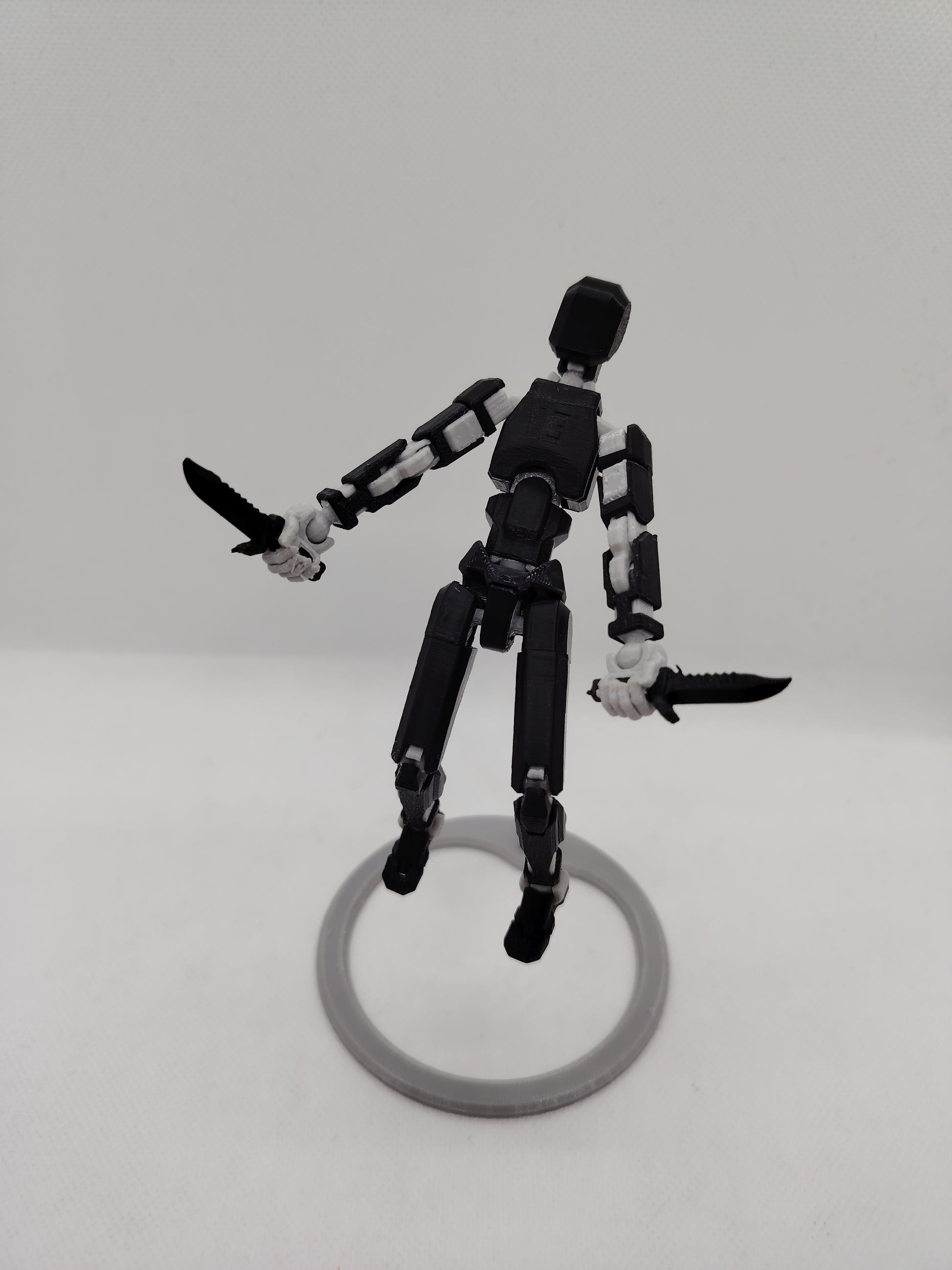 Figura articulada Dummy 13 en color negro, con un diseño sobrio y potente. Viene completamente armada, lista para posar o exhibir, e incluye armas accesorias que refuerzan su estilo táctico y futurista. Impresa en 3D con acabado resistente, ideal para colección, decoración o setups gamer.